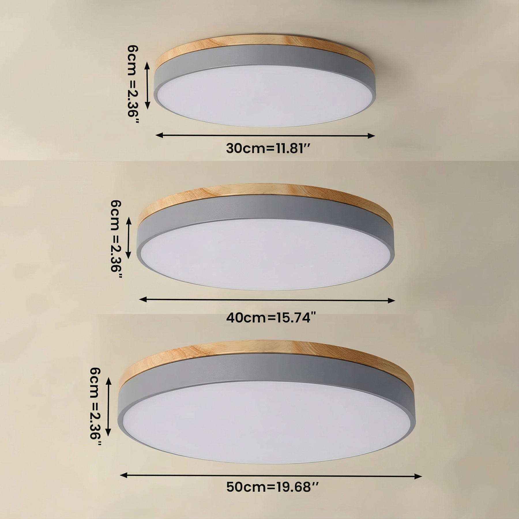 Abmessungen ⌀30 cm, ⌀40 cm, ⌀50 cm, ⌀60 cm