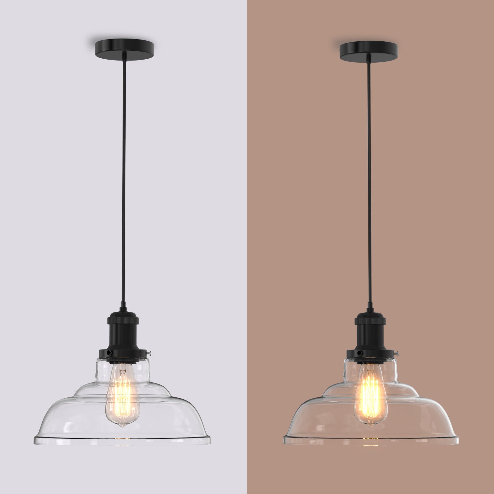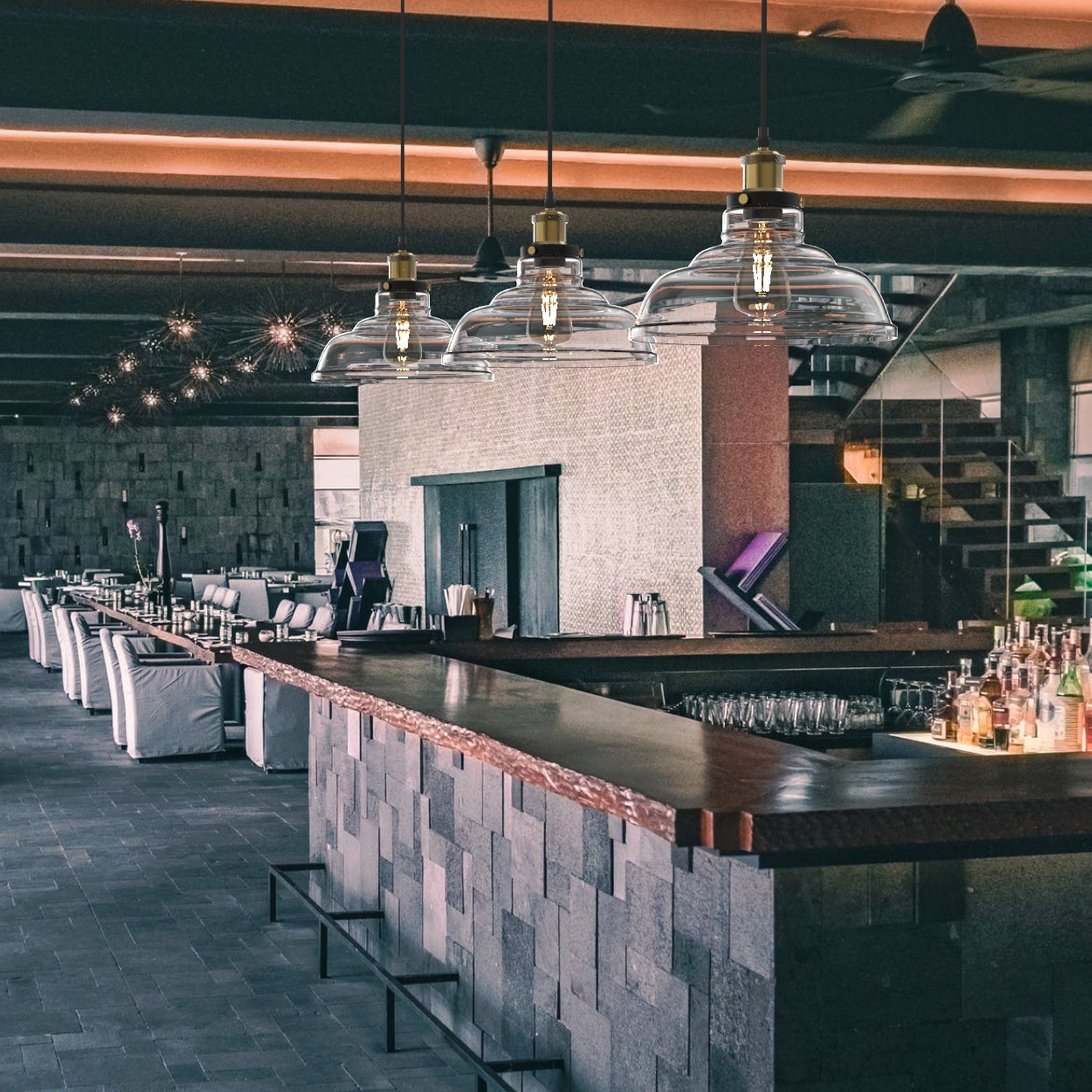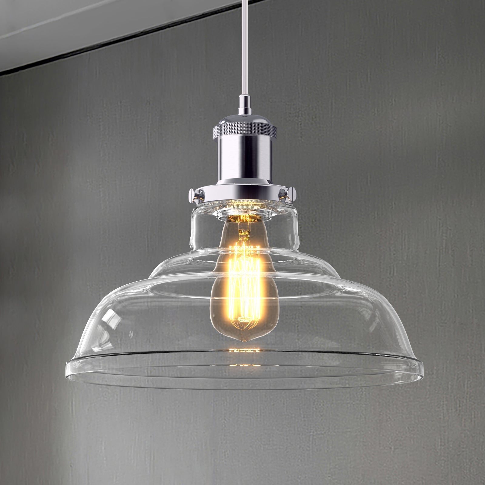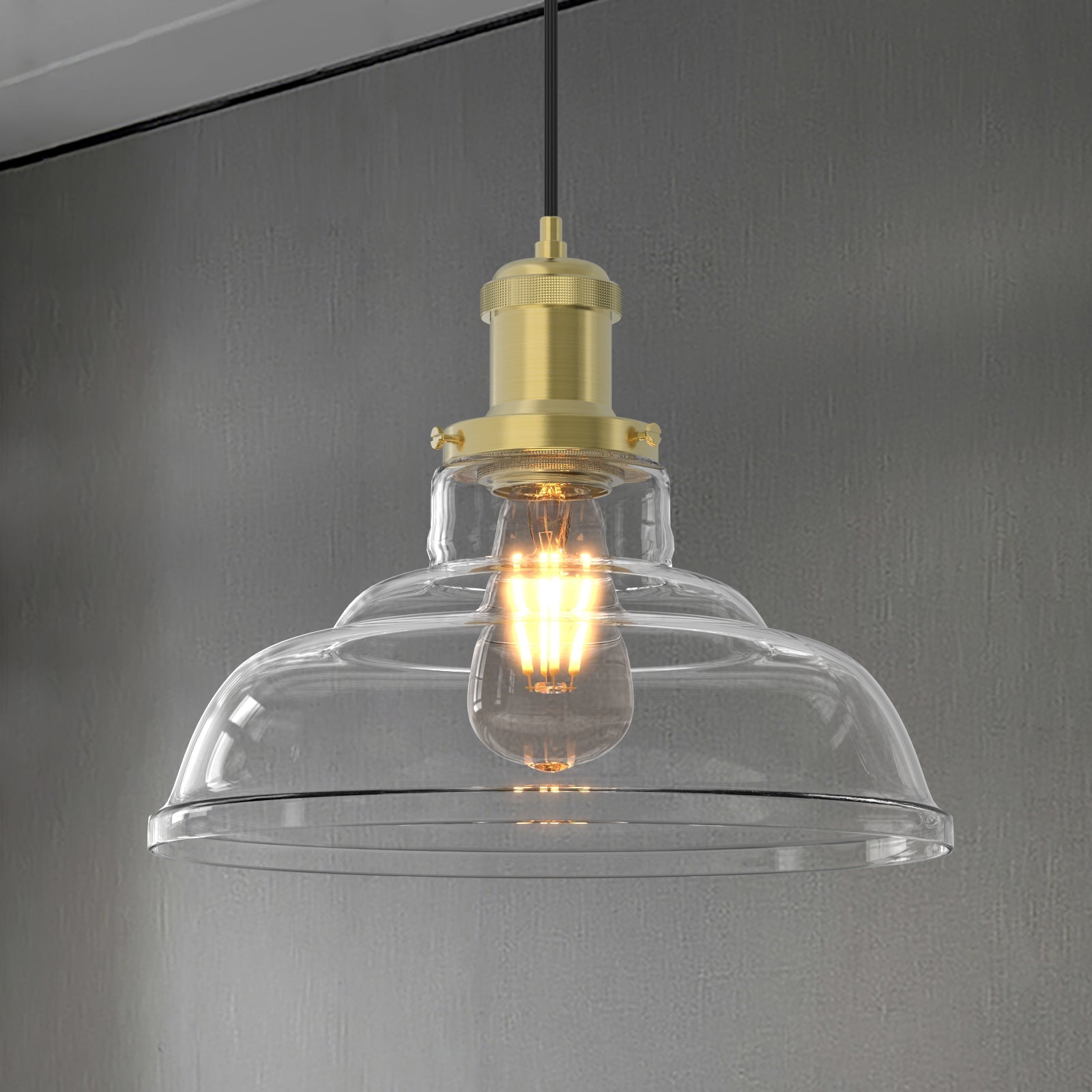 Die Pendelleuchte Glas E27 | 1-flammig bringt klare Eleganz in Ihr Zuhause. Der transparente Glasschirm inszeniert das E27-Leuchtmittel (LED empfohlen) und spendet angenehmes, gleichmäßiges Licht – perfekt für Esstisch, Küche oder Flur. Zeitlos, vielseitig und pflegeleicht.